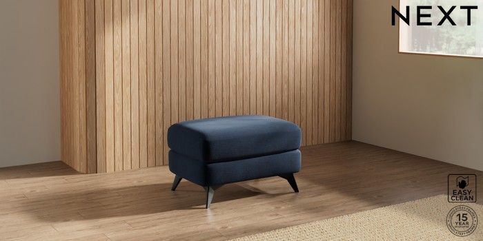 7.2.10 Parker Footstool Fine Chenille Easy Clean Dark Navy Blue High Metal - Black | Made Click here to use our website with more accessibility support, for example screen readers