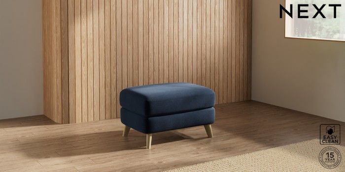 7.2.10 Parker Footstool Fine Chenille Easy Clean Dark Navy Blue Low Retro Tapered - Light | Made Click here to use our website with more accessibility support, for example screen readers