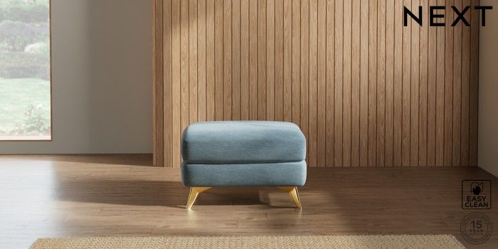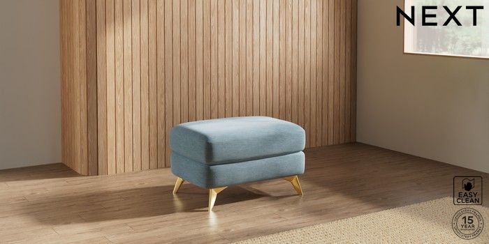 7.2.10 Parker Footstool Fine Chenille Easy Clean Mid Blue High Metal - Brass | Made Click here to use our website with more accessibility support, for example screen readers