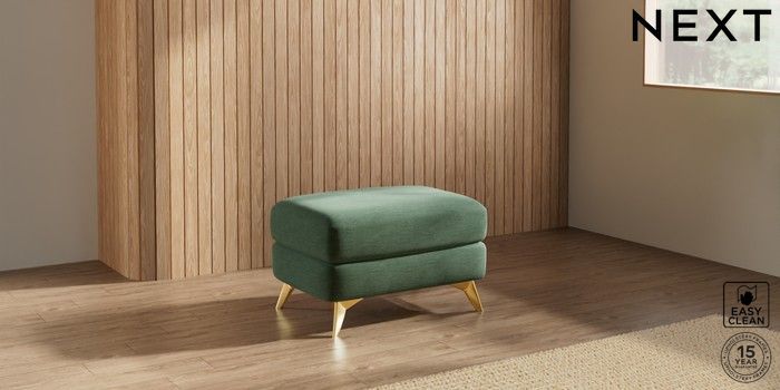 7.2.10 Parker Footstool Fine Chenille Easy Clean Mid Khaki Green High Metal - Brass | Made Click here to use our website with more accessibility support, for example screen readers