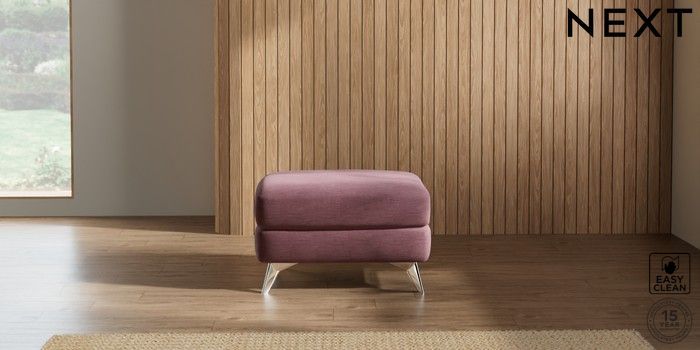 7.2.10 Parker Footstool Fine Chenille Easy Clean Mid Mulberry Purple High Metal - Chrome | Made Click here to use our website with more accessibility support, for example screen readers