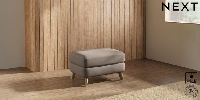 7.2.10 Parker Footstool Fine Chenille Easy Clean Mid Taupe Brown Low Retro Tapered - Light | Made Click here to use our website with more accessibility support, for example screen readers