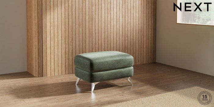 7.2.10 Parker Footstool Luxe Chenille Mid Green High Metal - Chrome | Made Click here to use our website with more accessibility support, for example screen readers