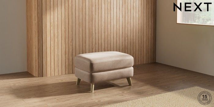 7.2.10 Parker Footstool Luxe Chenille Mid Natural Low Retro Tapered - Light | Made Click here to use our website with more accessibility support, for example screen readers