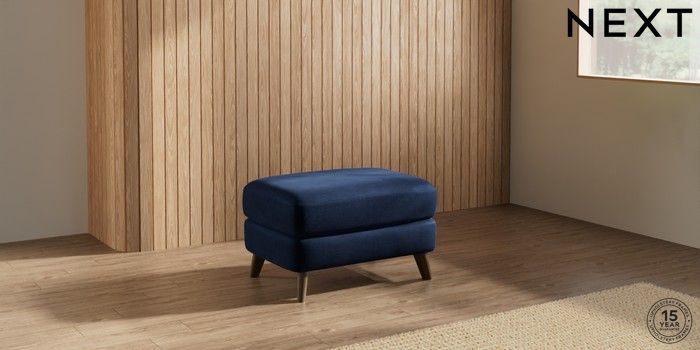 7.2.10 Parker Footstool Luxe Chenille Navy Blue Low Retro Tapered - Mid | Made Click here to use our website with more accessibility support, for example screen readers