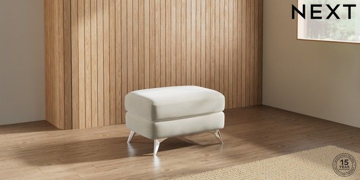 7.2.10 Parker Footstool Luxe Chenille Oyster High Metal - Chrome | Made Click here to use our website with more accessibility support, for example screen readers
