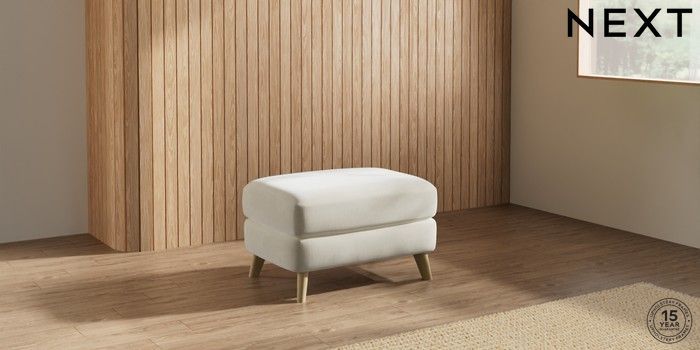 7.2.10 Parker Footstool Luxe Chenille Oyster Low Retro Tapered - Light | Made Click here to use our website with more accessibility support, for example screen readers