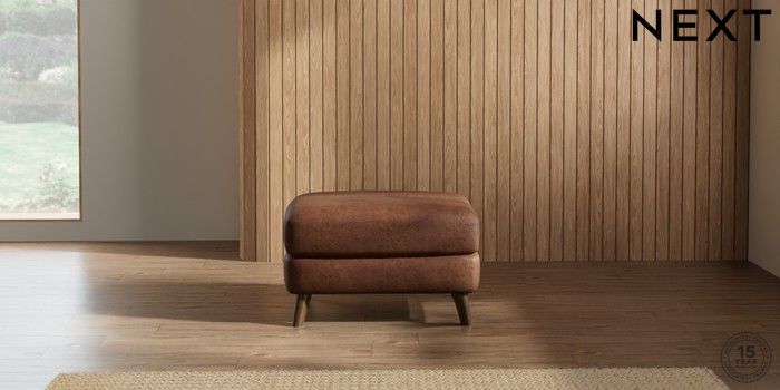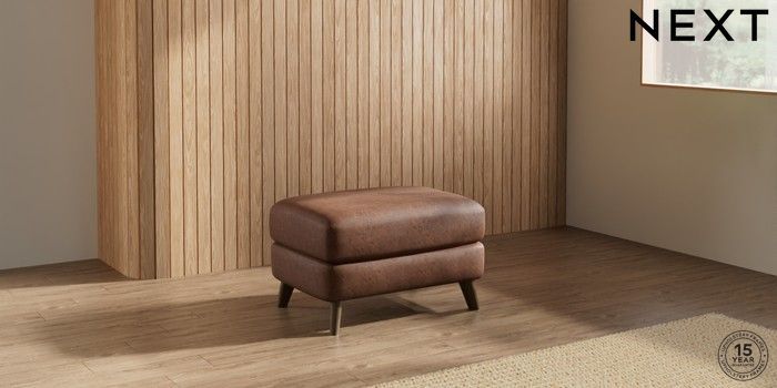 7.2.10 Parker Footstool Monza Faux Leather Easy Clean Chestnut Brown Low Retro Tapered - Mid | Made Click here to use our website with more accessibility support, for example screen readers