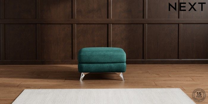 7.2.10 Parker Footstool Plush Chenille Dark Teal Green High Metal - Chrome | Made Click here to use our website with more accessibility support, for example screen readers