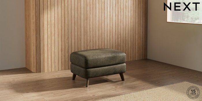 7.2.10 Parker Footstool Plush Chenille Moss Green Low Retro Tapered - Mid | Made Click here to use our website with more accessibility support, for example screen readers