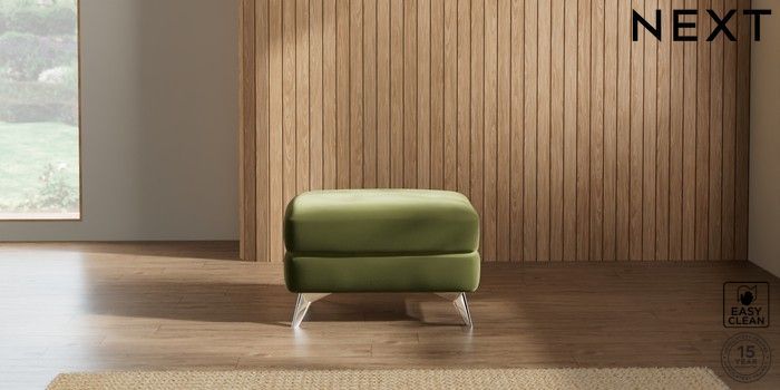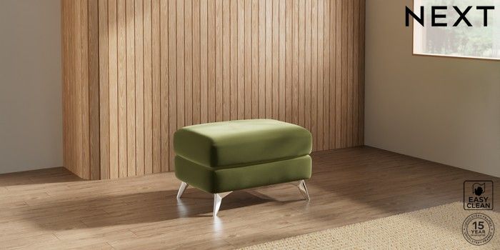 7.2.10 Parker Footstool Plush Velvet Easy Clean Mid Olive Green High Metal - Chrome | Made Click here to use our website with more accessibility support, for example screen readers