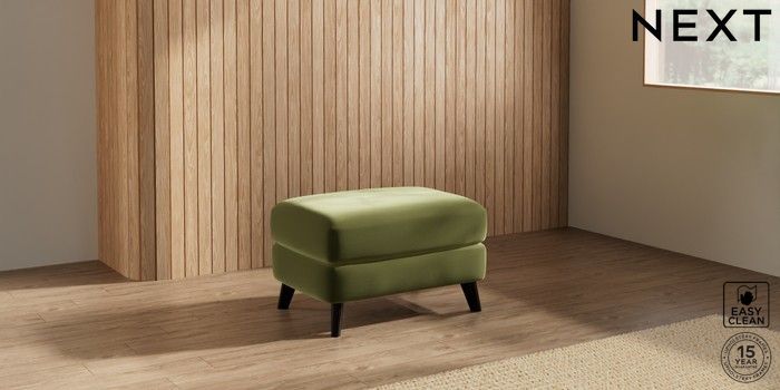 7.2.10 Parker Footstool Plush Velvet Easy Clean Mid Olive Green Low Retro Tapered - Dark | Made Click here to use our website with more accessibility support, for example screen readers