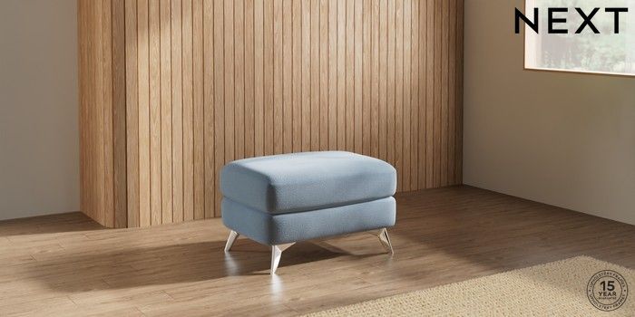 7.2.10 Parker Footstool Relaxed Linen Look Mid Blue High Metal - Chrome | Made Click here to use our website with more accessibility support, for example screen readers