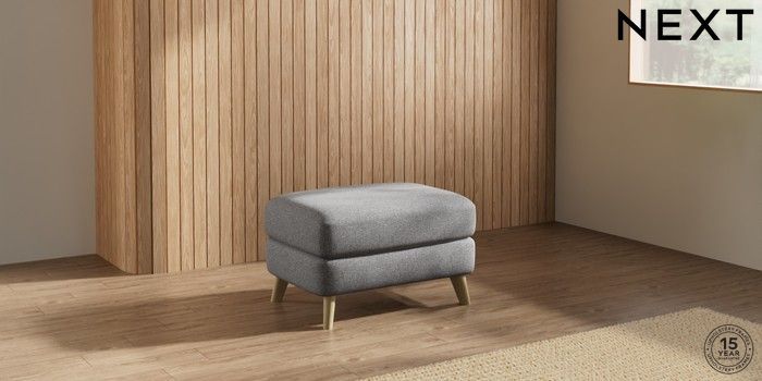 7.2.10 Parker Footstool Studio Chenille Mid Grey Low Retro Tapered - Light | Made Click here to use our website with more accessibility support, for example screen readers