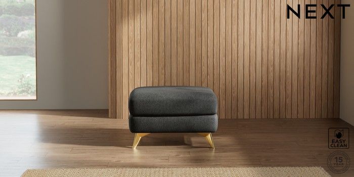7.2.10 Parker Footstool Tweedy Blend Easy Clean Charcoal Grey High Metal - Brass | Made Click here to use our website with more accessibility support, for example screen readers