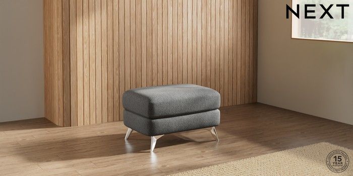 7.2.10 Parker Footstool Tweedy Chenille Dark Grey High Metal - Chrome | Made Click here to use our website with more accessibility support, for example screen readers