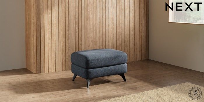 7.2.10 Parker Footstool Tweedy Chenille Navy Blue High Metal - Black | Made Click here to use our website with more accessibility support, for example screen readers