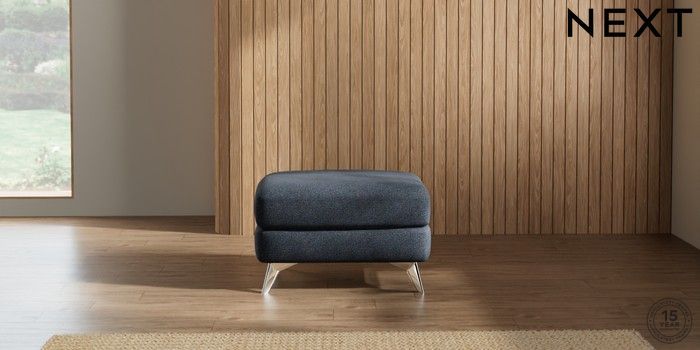 7.2.10 Parker Footstool Tweedy Chenille Navy Blue High Metal - Chrome | Made Click here to use our website with more accessibility support, for example screen readers