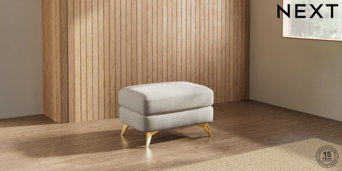 7.2.10 Parker Footstool Tweedy Chenille Oyster High Metal - Brass | Made Click here to use our website with more accessibility support, for example screen readers