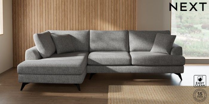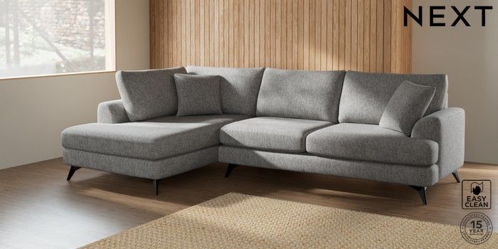 7.2.10 Parker Large Corner Chaise - Left Hand Chunky Boucle Easy Clean Light Grey High Metal - Black | Made Click here to use our website with more accessibility support, for example screen readers