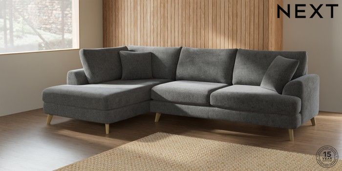 7.2.10 Parker Large Corner Chaise - Left Hand Chunky Chenille Dark Grey Low Retro Tapered - Light | Made Click here to use our website with more accessibility support, for example screen readers