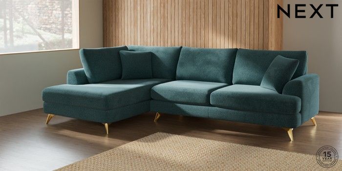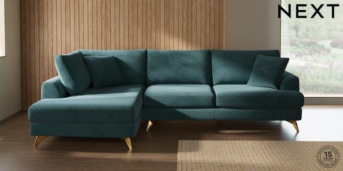 7.2.10 Parker Large Corner Chaise - Left Hand Chunky Chenille Mid Teal Green High Metal - Brass | Made Click here to use our website with more accessibility support, for example screen readers