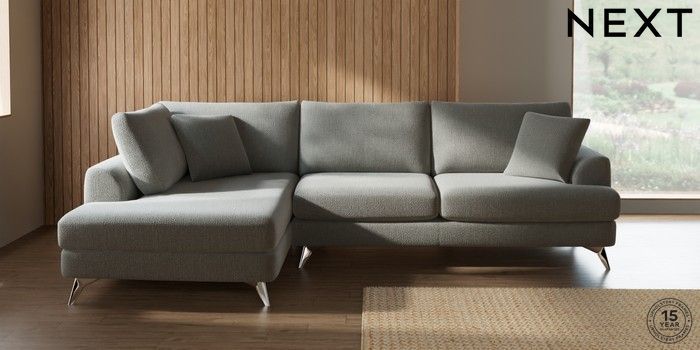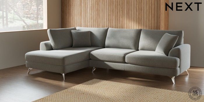 7.2.10 Parker Large Corner Chaise - Left Hand Chunky Texture Dove High Metal - Chrome | Made Click here to use our website with more accessibility support, for example screen readers