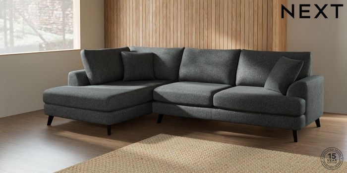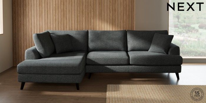 7.2.10 Parker Large Corner Chaise - Left Hand Cotswold Chenille Dark Grey Low Retro Tapered - Dark | Made Click here to use our website with more accessibility support, for example screen readers