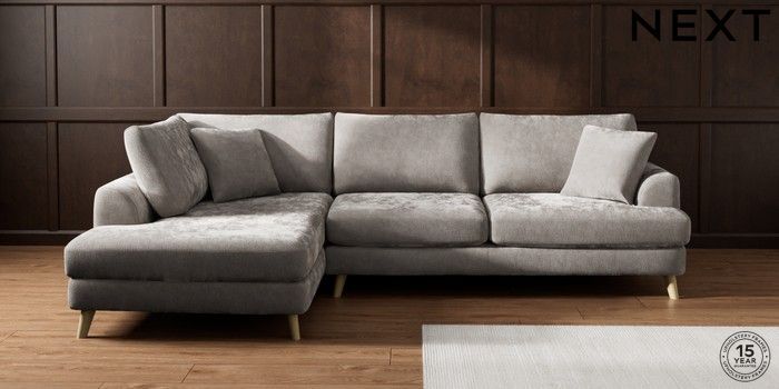 7.2.10 Parker Large Corner Chaise - Left Hand Distressed Velour French Grey Low Retro Tapered - Light | Made Click here to use our website with more accessibility support, for example screen readers