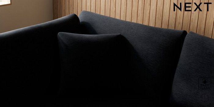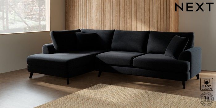 7.2.10 Parker Large Corner Chaise - Left Hand Fine Chenille Easy Clean Black Low Retro Tapered - Dark | Made Click here to use our website with more accessibility support, for example screen readers