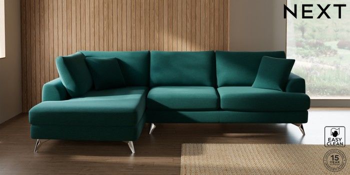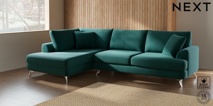 7.2.10 Parker Large Corner Chaise - Left Hand Fine Chenille Easy Clean Dark Juniper Green High Metal - Chrome | Made Click here to use our website with more accessibility support, for example screen readers