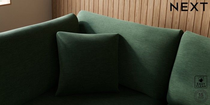 7.2.10 Parker Large Corner Chaise - Left Hand Fine Chenille Easy Clean Mid Khaki Green Low Retro Tapered - Light | Made Click here to use our website with more accessibility support, for example screen readers