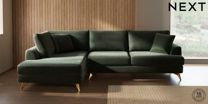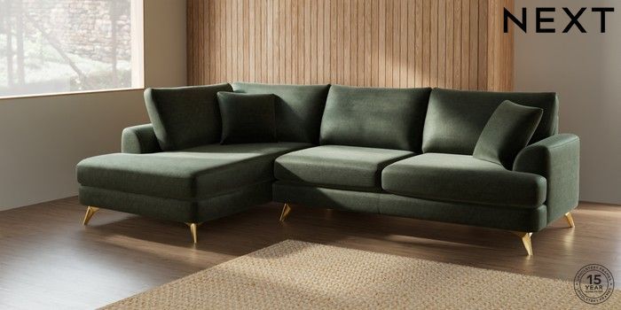 7.2.10 Parker Large Corner Chaise - Left Hand Luxe Chenille Mid Green High Metal - Brass | Made Click here to use our website with more accessibility support, for example screen readers