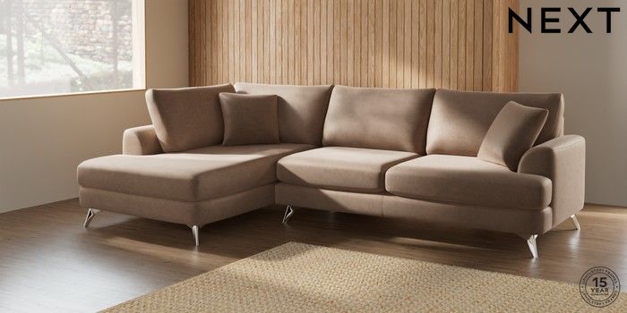 7.2.10 Parker Large Corner Chaise - Left Hand Luxe Chenille Mid Natural High Metal - Chrome | Made Click here to use our website with more accessibility support, for example screen readers