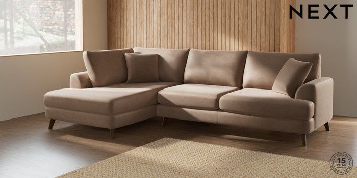 7.2.10 Parker Large Corner Chaise - Left Hand Luxe Chenille Mid Natural Low Retro Tapered - Mid | Made Click here to use our website with more accessibility support, for example screen readers