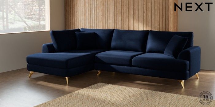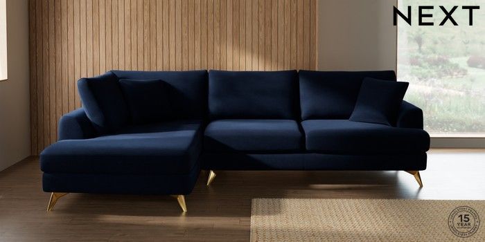 7.2.10 Parker Large Corner Chaise - Left Hand Luxe Chenille Navy Blue High Metal - Brass | Made Click here to use our website with more accessibility support, for example screen readers