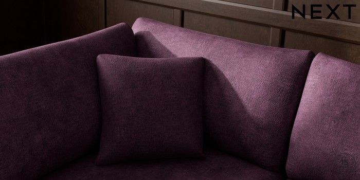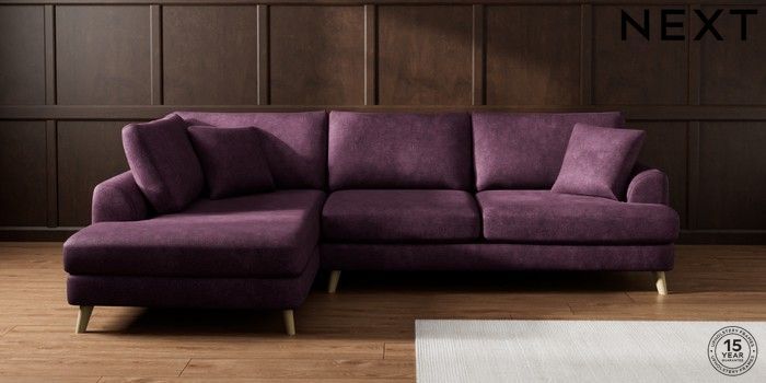 7.2.10 Parker Large Corner Chaise - Left Hand Plush Chenille Dark Plum Purple Low Retro Tapered - Light | Made Click here to use our website with more accessibility support, for example screen readers