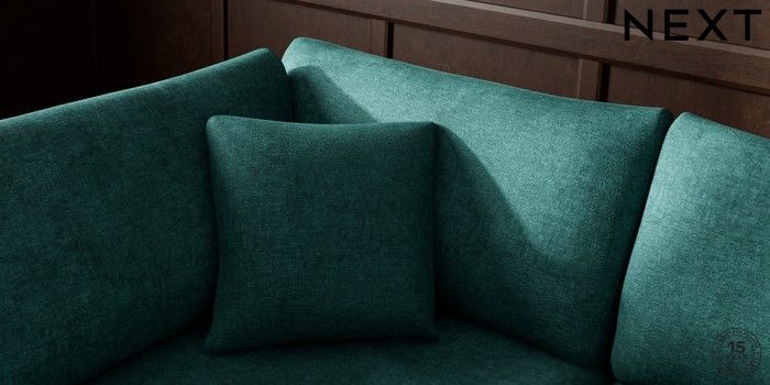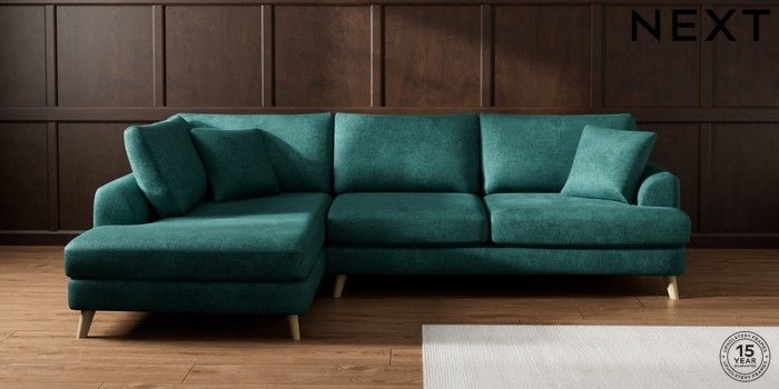 7.2.10 Parker Large Corner Chaise - Left Hand Plush Chenille Dark Teal Green Low Retro Tapered - Light | Made Click here to use our website with more accessibility support, for example screen readers