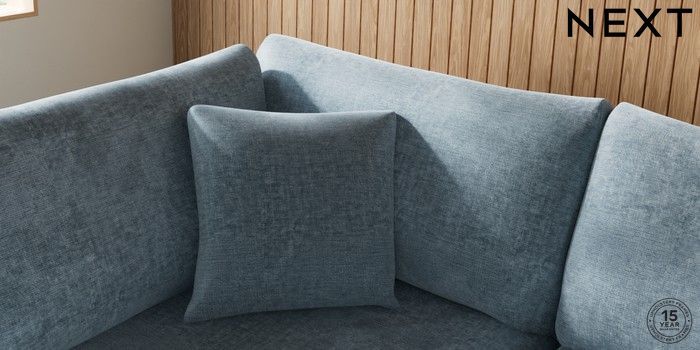 7.2.10 Parker Large Corner Chaise - Left Hand Plush Chenille Light Blue Low Retro Tapered - Mid | Made Click here to use our website with more accessibility support, for example screen readers