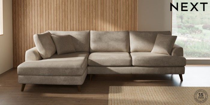 7.2.10 Parker Large Corner Chaise - Left Hand Plush Chenille Light Natural Low Retro Tapered - Mid | Made Click here to use our website with more accessibility support, for example screen readers