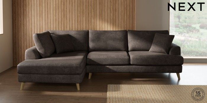 7.2.10 Parker Large Corner Chaise - Left Hand Plush Chenille Mink Brown Low Retro Tapered - Light | Made Click here to use our website with more accessibility support, for example screen readers