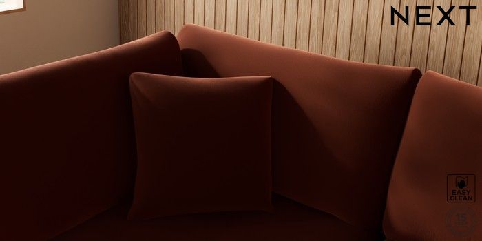 7.2.10 Parker Large Corner Chaise - Left Hand Plush Velvet Easy Clean Ginger Orange Low Retro Tapered - Light | Made Click here to use our website with more accessibility support, for example screen readers