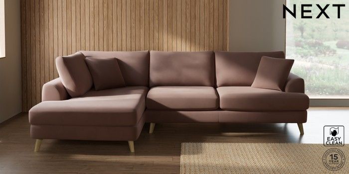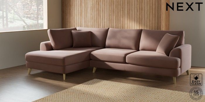 7.2.10 Parker Large Corner Chaise - Left Hand Plush Velvet Easy Clean Mid Natural Low Retro Tapered - Light | Made Click here to use our website with more accessibility support, for example screen readers