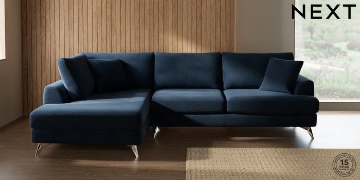 7.2.10 Parker Large Corner Chaise - Left Hand Ripple Chenille Dark Blue High Metal - Chrome | Made Click here to use our website with more accessibility support, for example screen readers
