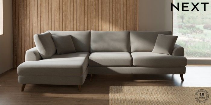 7.2.10 Parker Large Corner Chaise - Left Hand Ripple Chenille Light Natural Low Retro Tapered - Mid | Made Click here to use our website with more accessibility support, for example screen readers