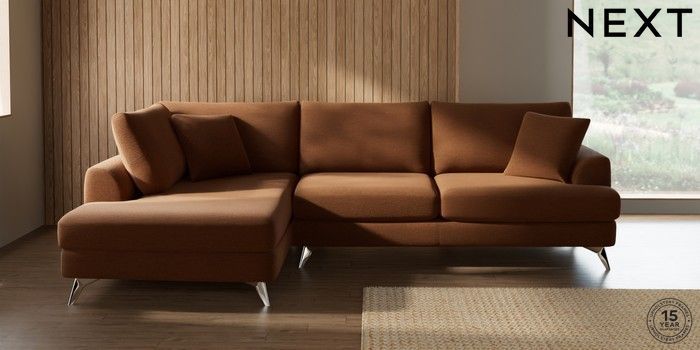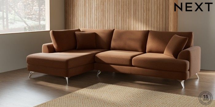 7.2.10 Parker Large Corner Chaise - Left Hand Ripple Chenille Mid Rust Brown High Metal - Chrome | Made Click here to use our website with more accessibility support, for example screen readers