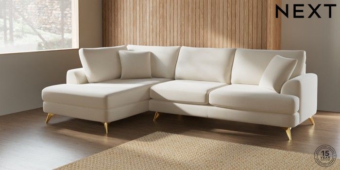 7.2.10 Parker Large Corner Chaise - Left Hand Ripple Chenille Oyster High Metal - Brass | Made Click here to use our website with more accessibility support, for example screen readers