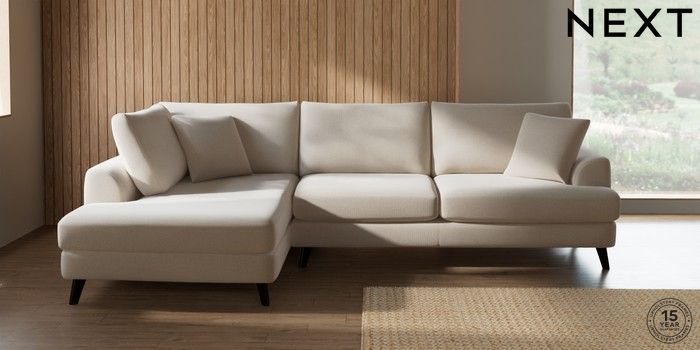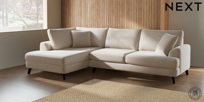 7.2.10 Parker Large Corner Chaise - Left Hand Studio Chenille Oyster Low Retro Tapered - Dark | Made Click here to use our website with more accessibility support, for example screen readers