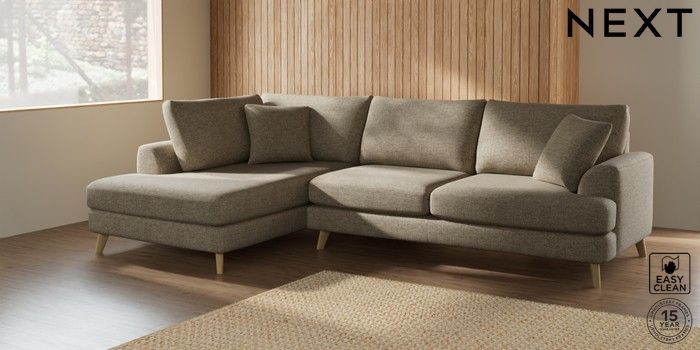 7.2.10 Parker Large Corner Chaise - Left Hand Woven Chenille Easy Clean Mid Natural Low Retro Tapered - Light | Made Click here to use our website with more accessibility support, for example screen readers