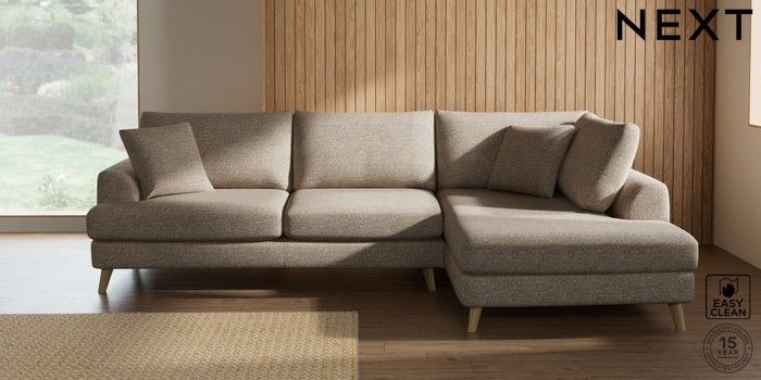 7.2.10 Parker Large Corner Chaise - Right Hand Chunky Boucle Easy Clean Mid Natural Low Retro Tapered - Light | Made Click here to use our website with more accessibility support, for example screen readers